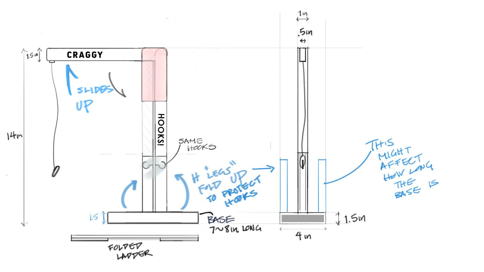 We decided to move forward with my "swiss army knife" inspired concept as it was the cleanest version in terms of manufacturability. The upward folding of the base legs was key to reach max foldability and portability.
